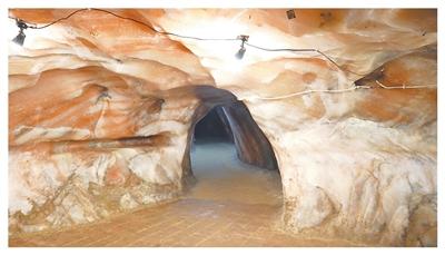观光层的矿道宽阔,游客可以参观四周的粉盐房间,还有为游客设计的矿道迷宫。迷宫四壁都是晶莹剔透的粉盐,在灯光照射下,深浅不一的粉盐形成大理石般的纹理,行走其中仿佛置身奇幻世界。矿道内,当地艺术家还用粉盐雕刻了几人高的雕塑,如同冰雕一般。在这里,用舌头舔一舔雕塑不会被粘住,只会觉得齁咸。